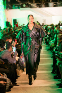 On Sunday Oct 17th in Chicago, celebrity designer Barbara Bates celebrated 35 years of fashion design with head turning looks worn by fabulous local and celebrity models including Lisa Raye and gospel singer sensation BB Winans to name a few. Some of the cities most elite black officials and loyal Bates fans gathered to witness the designer’s fashion masterpieces on the runway. Bate’s 70 piece collection consisted of Fall’s 2021 top trends infused with the designer’s creative magical touch. From bold colors like bumble bee yellow and brown in polka dots, “ I am a survivor” pink in honor of breast cancer month and big, bold iridescent purple & gold floral designs, the fall colors were incorporated in excellence. Must we note that this collection did not disappoint this year, in fact the designer’s collection never disappoints. Some of the top trends the designer embraced included puff down coats, twill capes, lots of shaggy/furry trims and embellishments, designer label suits and coats and tons of fun shawls perfect for the windy city weather. While we can’t remember every detail in each design from the top of our heads, we most certainly can show you, because we were there front row and happily ready to archive the celebration of 35 fabulous years of Barbara Bates Designs