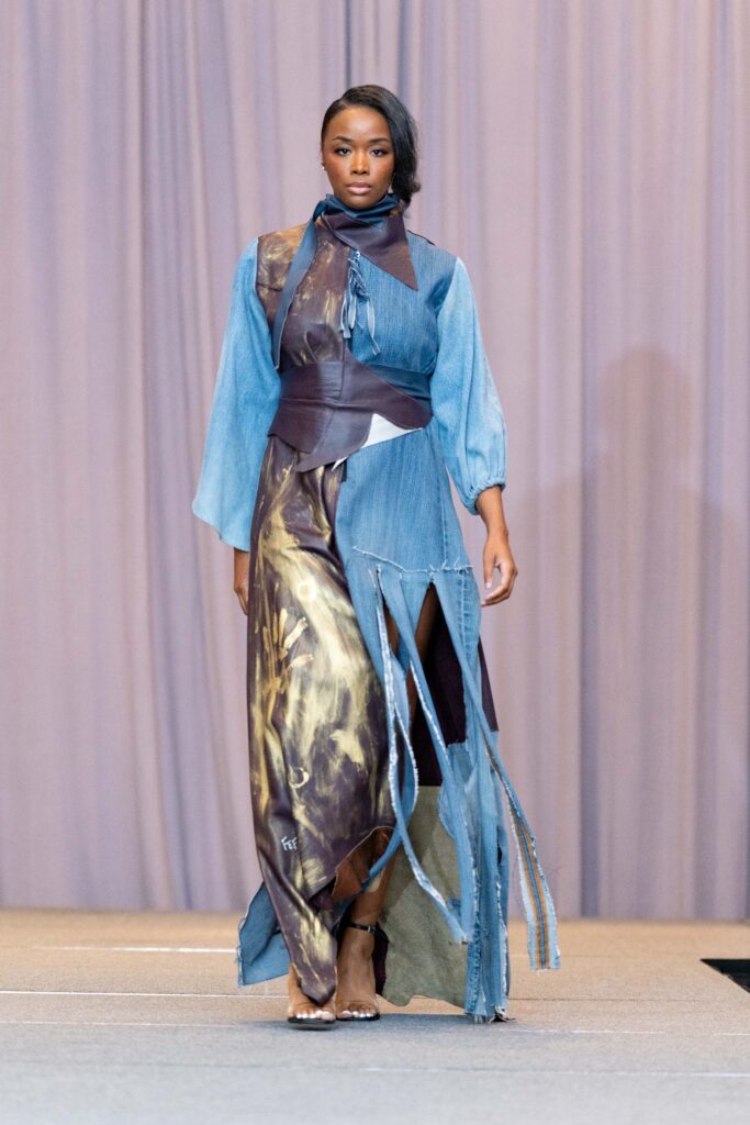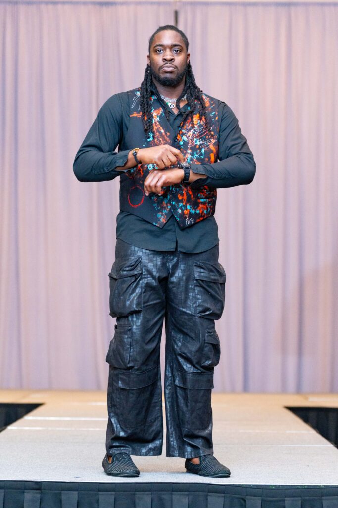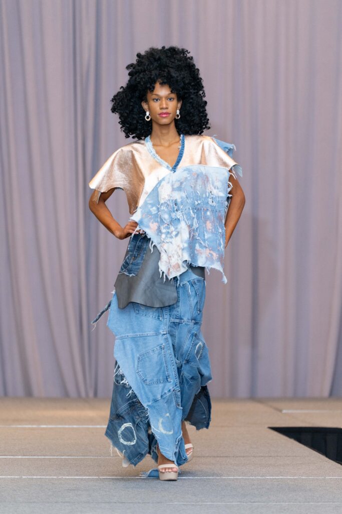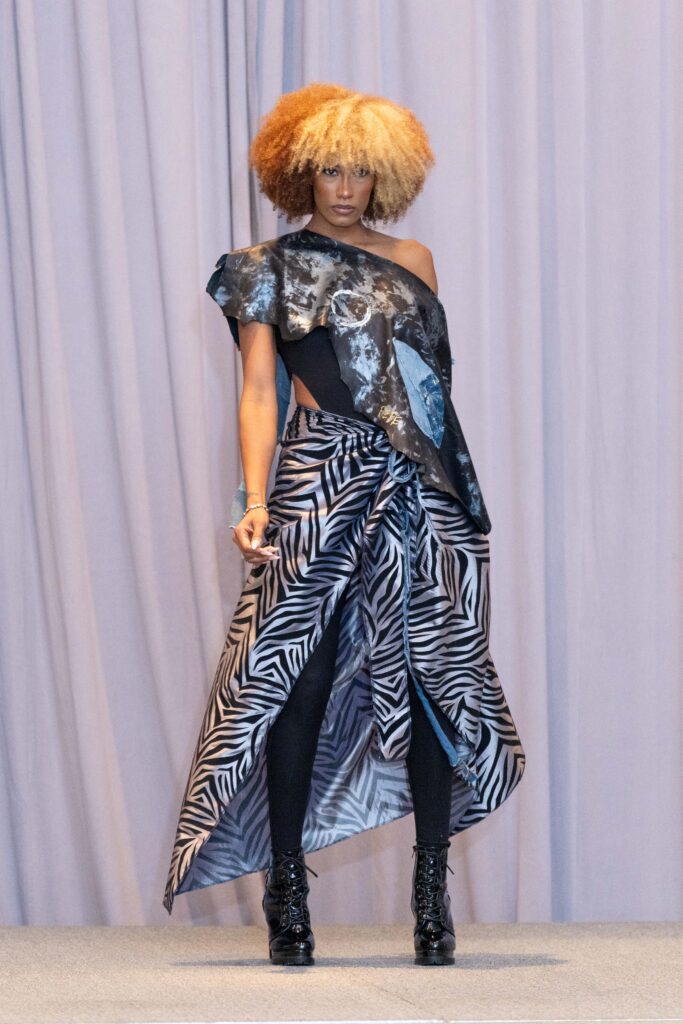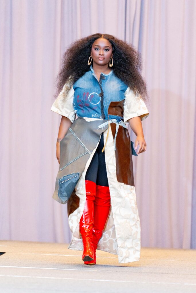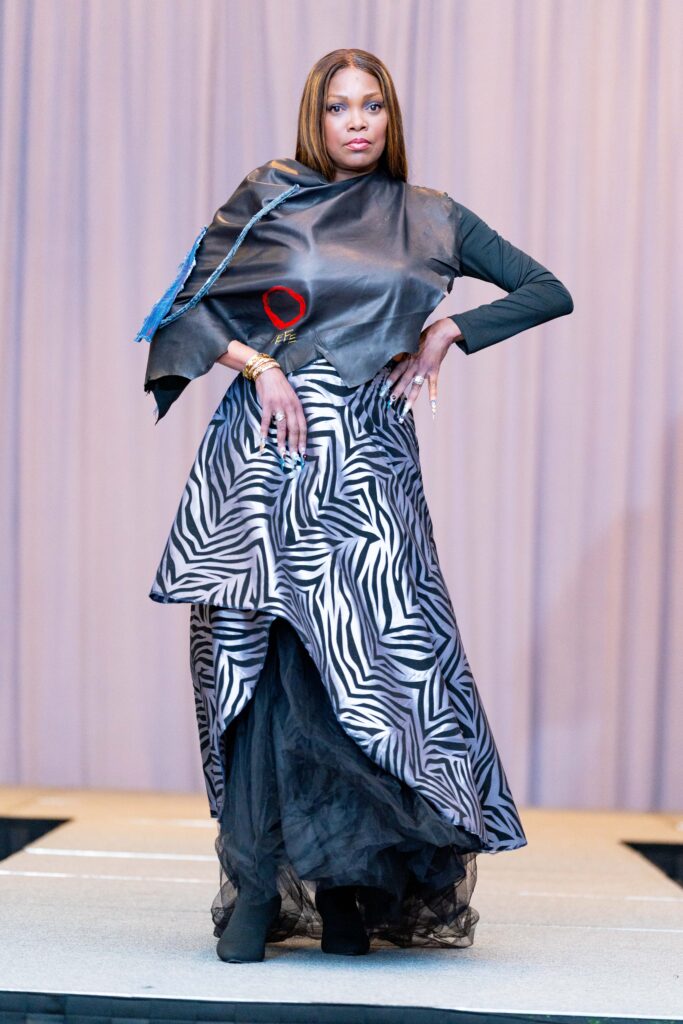 Her latest collection shown at the relentless fashion show featured Leather, denim, heavy satin, and taffeta on the runway. Her distinctive style as seen our runway has been featured in magazines, music videos, plays, and runway shows, reaching audiences around the globe. Fe-Fe has become highly sought after by performing artists for her unforgettable stage designs.