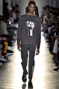 In the 2010s, fashion spoke plainly—and loudly. After the murder of Trayvon Martin in 2012, hoodies became symbols of solidarity. In 2014 and 2015, T-shirts bearing “Hands Up, Don’t Shoot” filled protest crowds following the death of Michael Brown. In 2020, “I Can’t Breathe” became a global uniform after the murder of George Floyd.