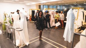 We’re excited to announce that Chicago High Fashion Luxury Designer Nathalie Loma launched her flagship bridal and special occasion Store over the weekend of July 9th. The store is located downtown Chicago in the NorthBridge Shops which is located 520 N Michigan Ave 520 North Michigan Avenue Level 1. A special ticketed champagne celebration took place Friday night, as many fellow fashionistas and longtime supporters of the Designer showed up to congratulate the designer on her new dress shop. The clothing was simply beautiful and we can’t wait to see people spotted around town in Nathalie Loma Designs