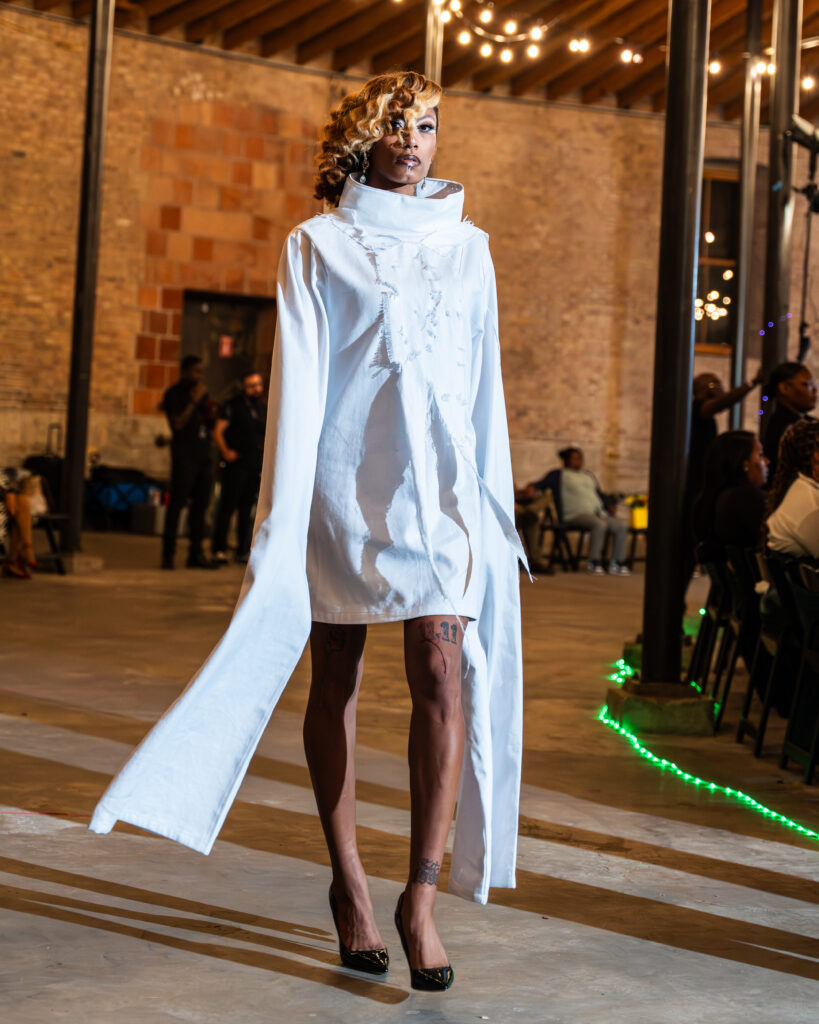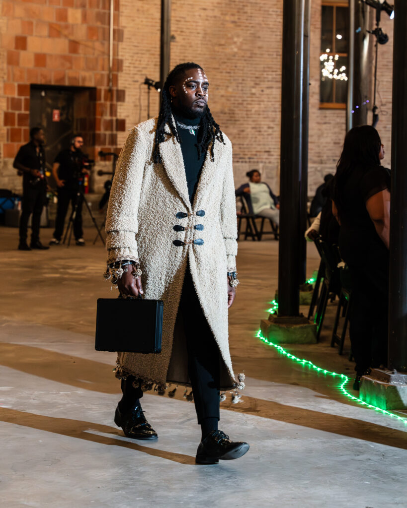 Beyond his sartorial brilliance, Bell showcased his multidimensional artistry through original music he composed and produced for the event, creating a powerful host of The Next Breath Podcast and a Youth Commissioner appointed by Mayor Brandon Johnson. Earlier this year, he made history as the youngest designer to ever showcase at the 30th Anniversary of the Black Women’s Expo and served as keynote speaker for the Mayor’s Ignite Your Future Summit (2025)atmosphere that elevated the runway experience. His models brought each piece to life through choreography and movement, crafting an emotional narrative that left audiences inspired.